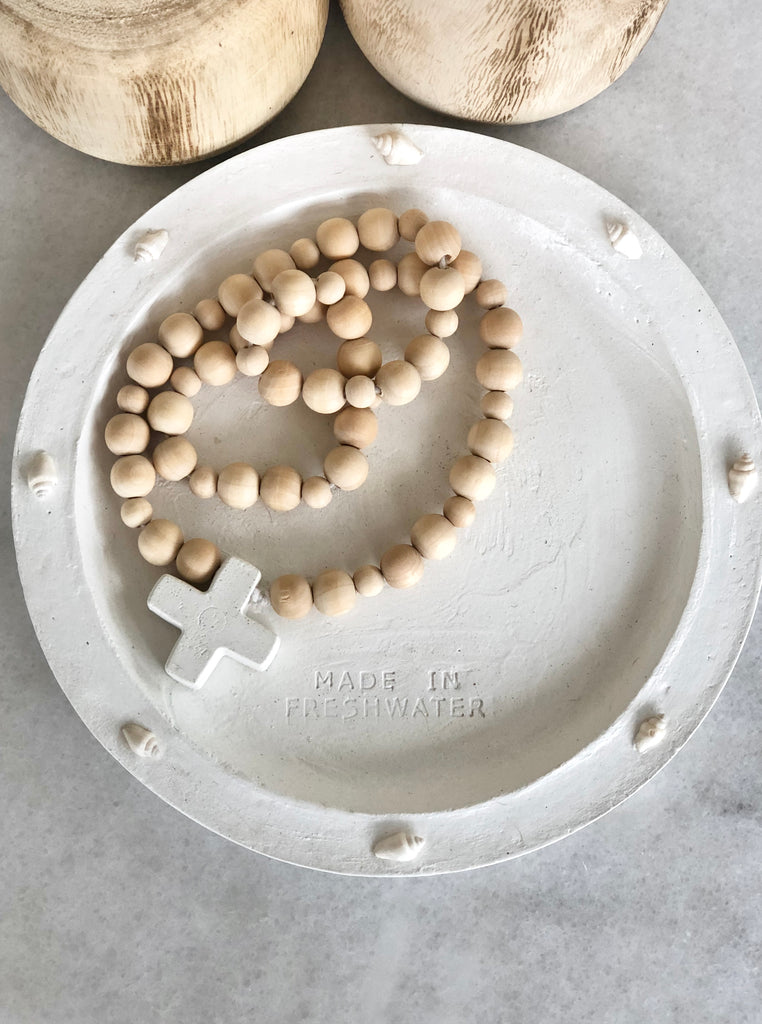 natural wooden beads make an easy addition to your home decor, handmade and secured with a hand poured cement cross size - 59 beads - 64cm  all pi...